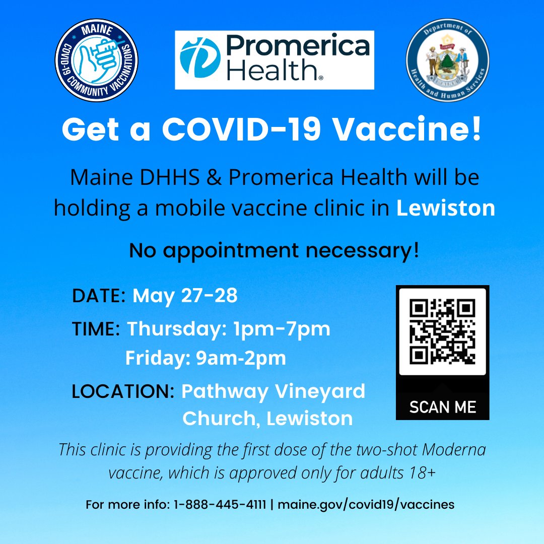 Maine Cdc On Twitter There Will Be A Mobile Vaccine Clinic In Lewiston This Thursday And Friday No Appointment Needed To Learn More Call 1 888 445 4111 Or Visit Https T Co 4x972kafvk Vaccinateme Https T Co W62x0hje58 Twitter